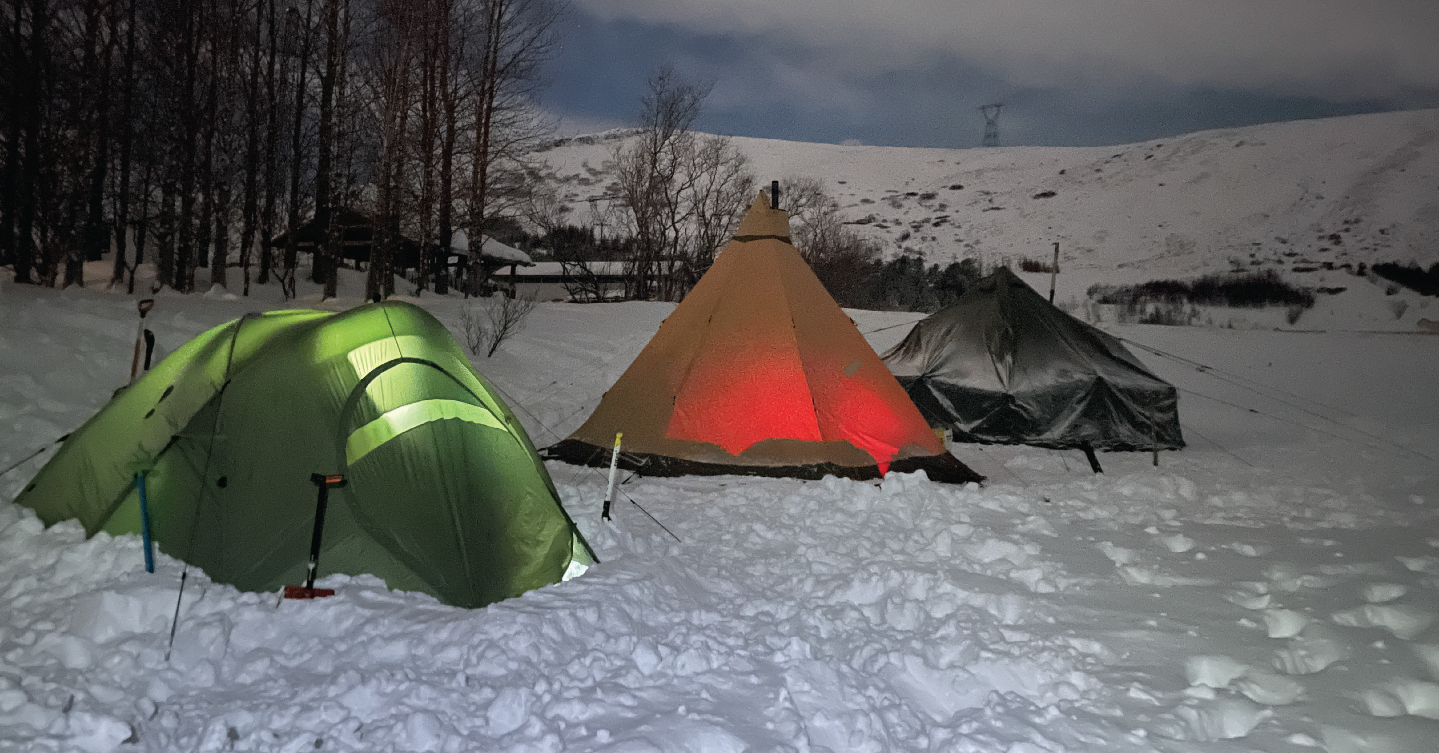 Eitt mest krefjandi verkefni Vetrarmótsins var að setja upp tjaldbúðir fyrir elstu skátanna. Um það bil 20 skátar gistu í tjöldum í tvær nætur. Veðrið var bæði mjög slæmt og en einnig komu kaflar þar sem var heiðskírt og logn. Skátarnir skemmtu sér konunglega þótt veðrið hafi barið hressilega á þeim en það verður eflaust það sem mun standa upp úr þegar litið er til baka að hafa tekist á við svona krefjandi aðstæður.