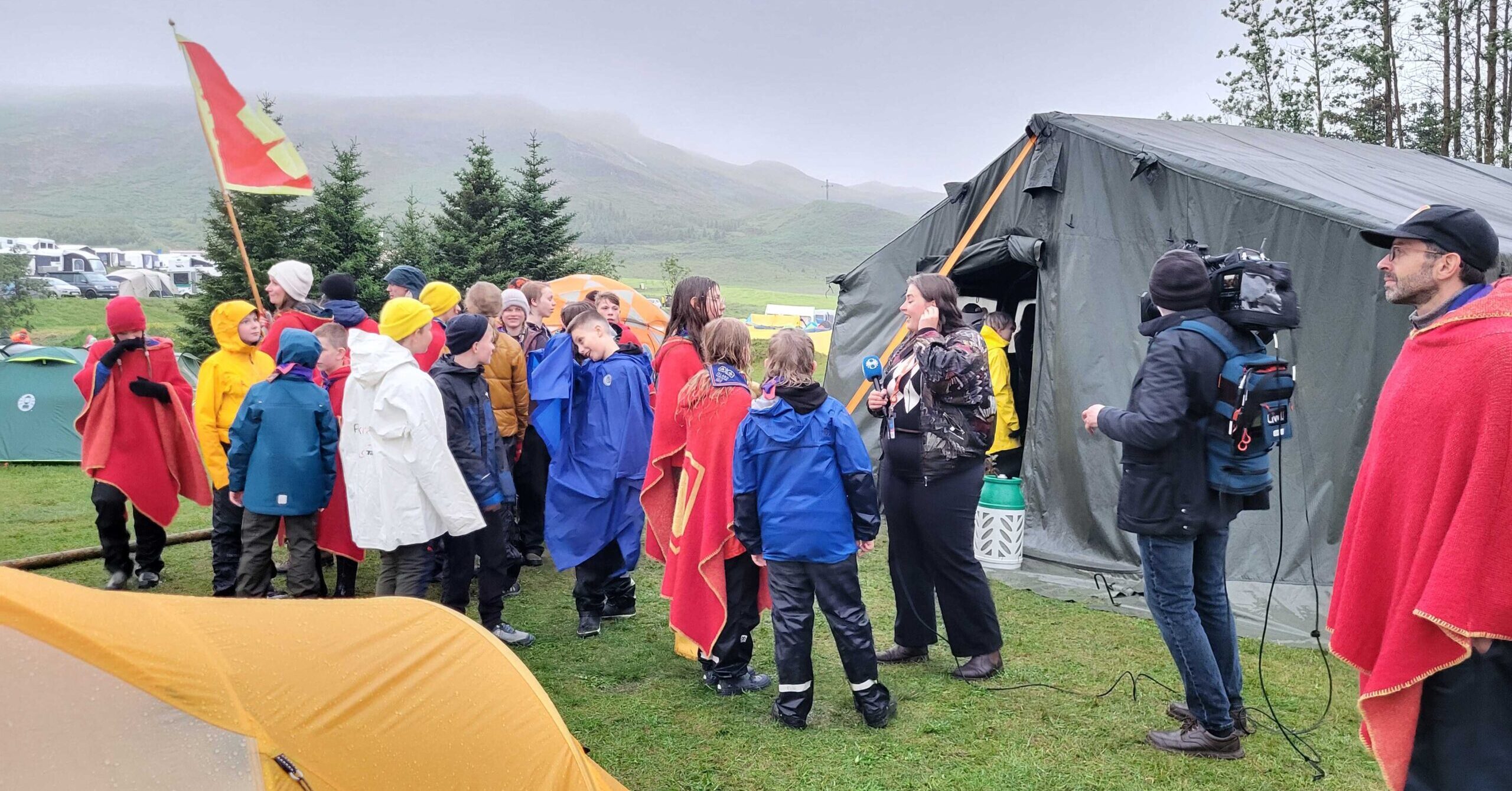 Hressir skátar úr skátafélaginu Skjöldungum voru í viðtali í kvöldfréttum RÚV þann 12. júlí þegar setningarathöfn var nýlega lokið. Endilega kíkið á viðtalið sem hefst á mínútu 18:50 í hlekknum hér.