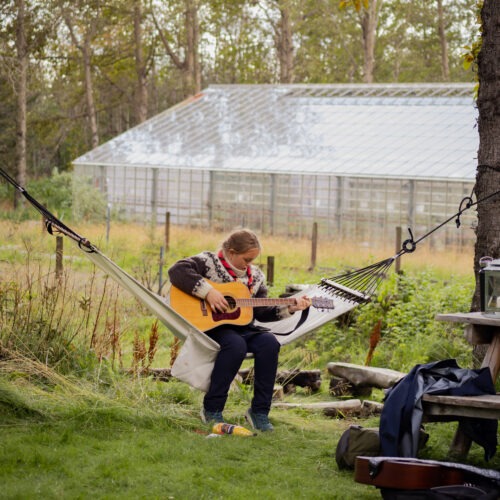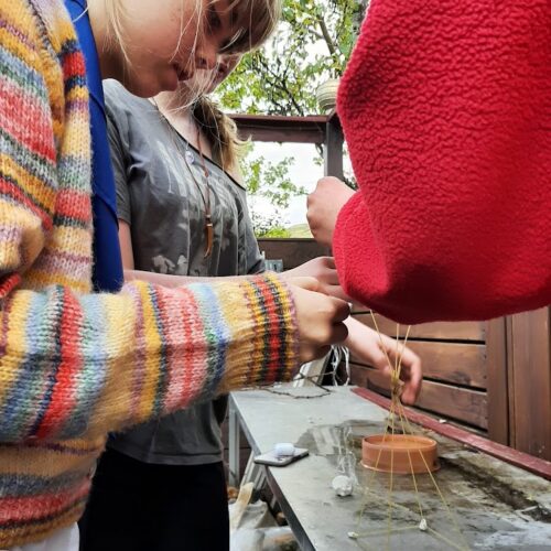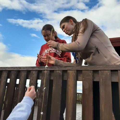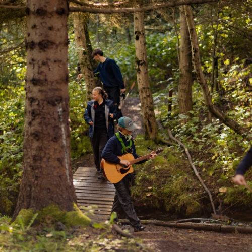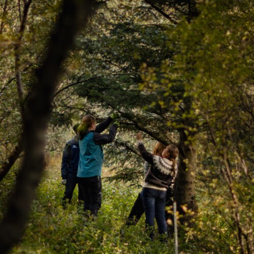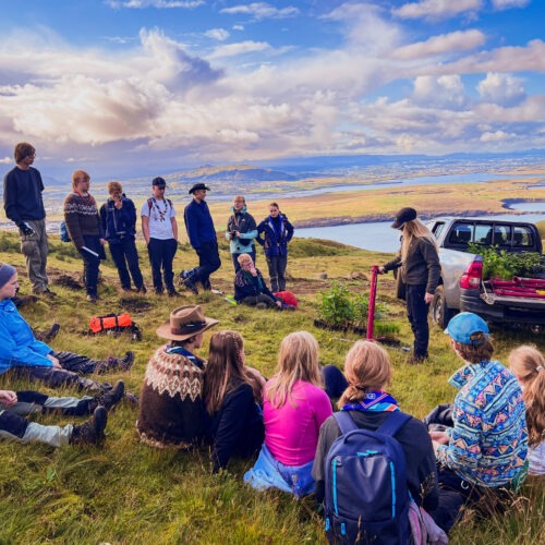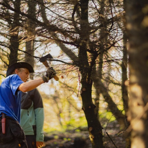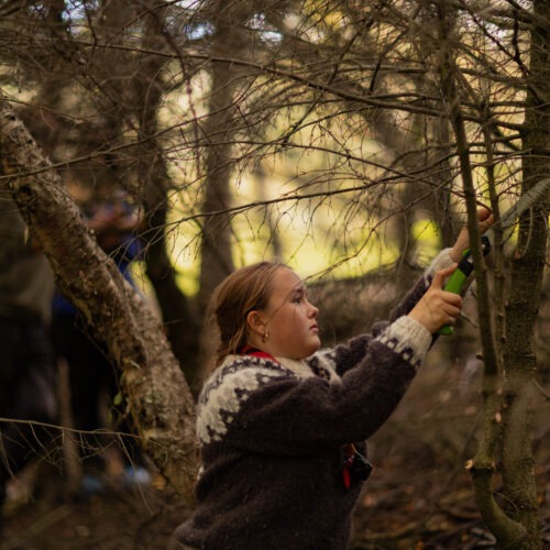 Eftir hádegismat gátu þau sem vildu tekið gönguna upp að Steini sem var um helmingurinn af hópnum en rest fór aftur niður í tjaldbúðina. Í síðdegishressingu voru kleinur og kanilsnúðar og svo var haldið af stað í stöðva dagskrá. Í stöðvunum var meðal annars uppkvistun við stíg í skóginum þar sem farið var yfir hvernig eigi að snyrta trén til þess að hleypa meiri birtu inn í skóginn og svo voru afgangs viðardrumbar endurnýttir og fræðsluefni í kringum það.