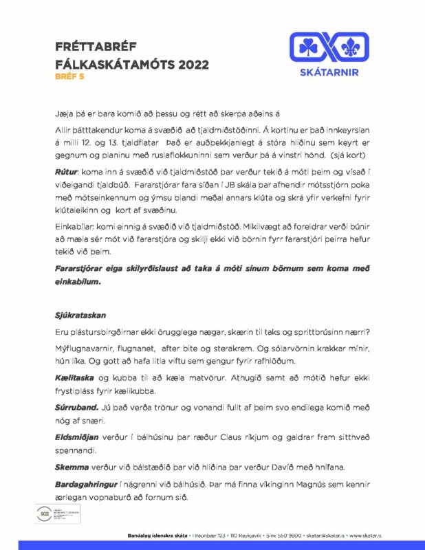 Fréttabréf – Fálkaskátamót 22 – Bréf 5