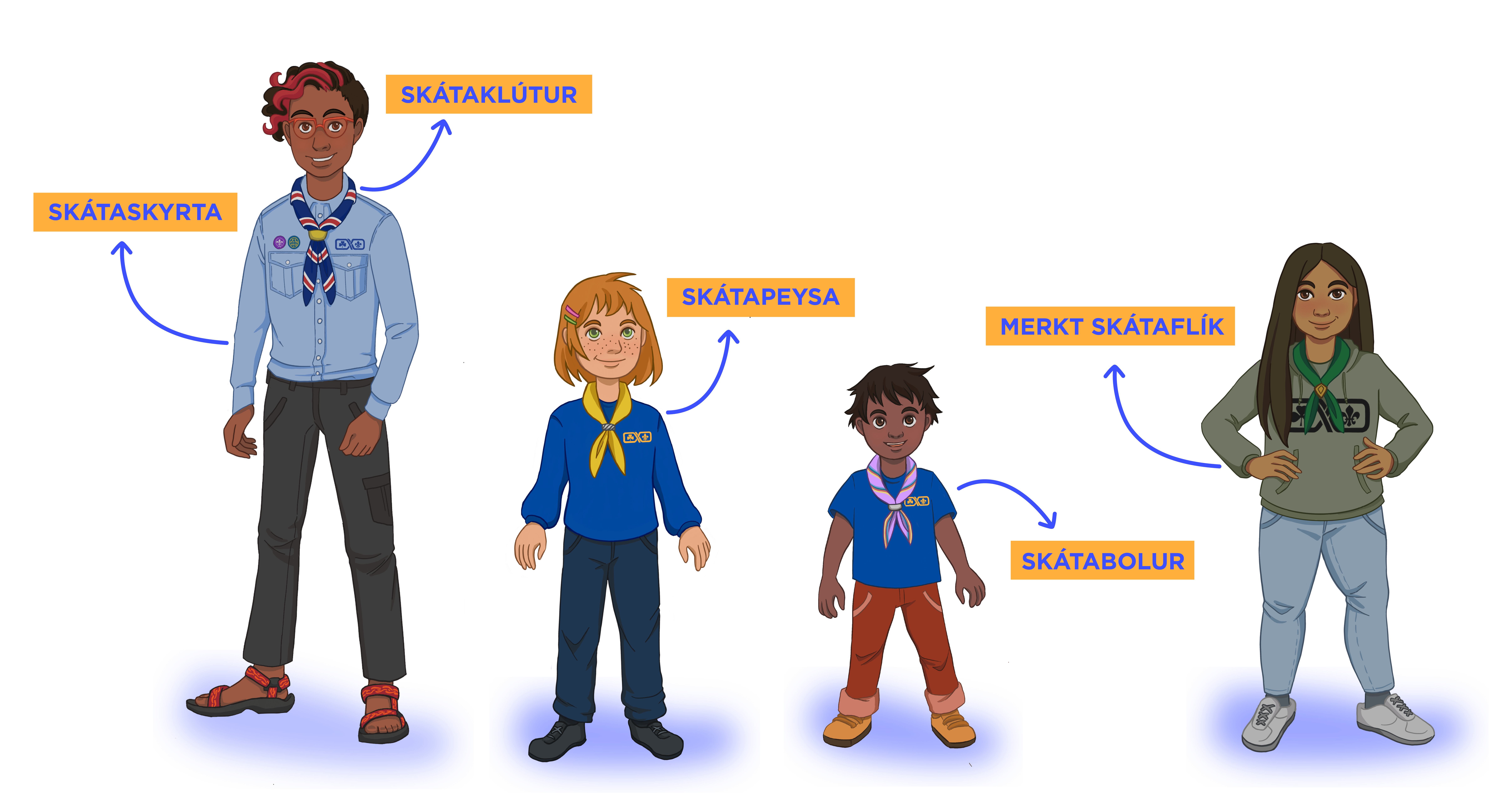 Rekkaskátar (16-18 ára) bera bláan skátaklút.