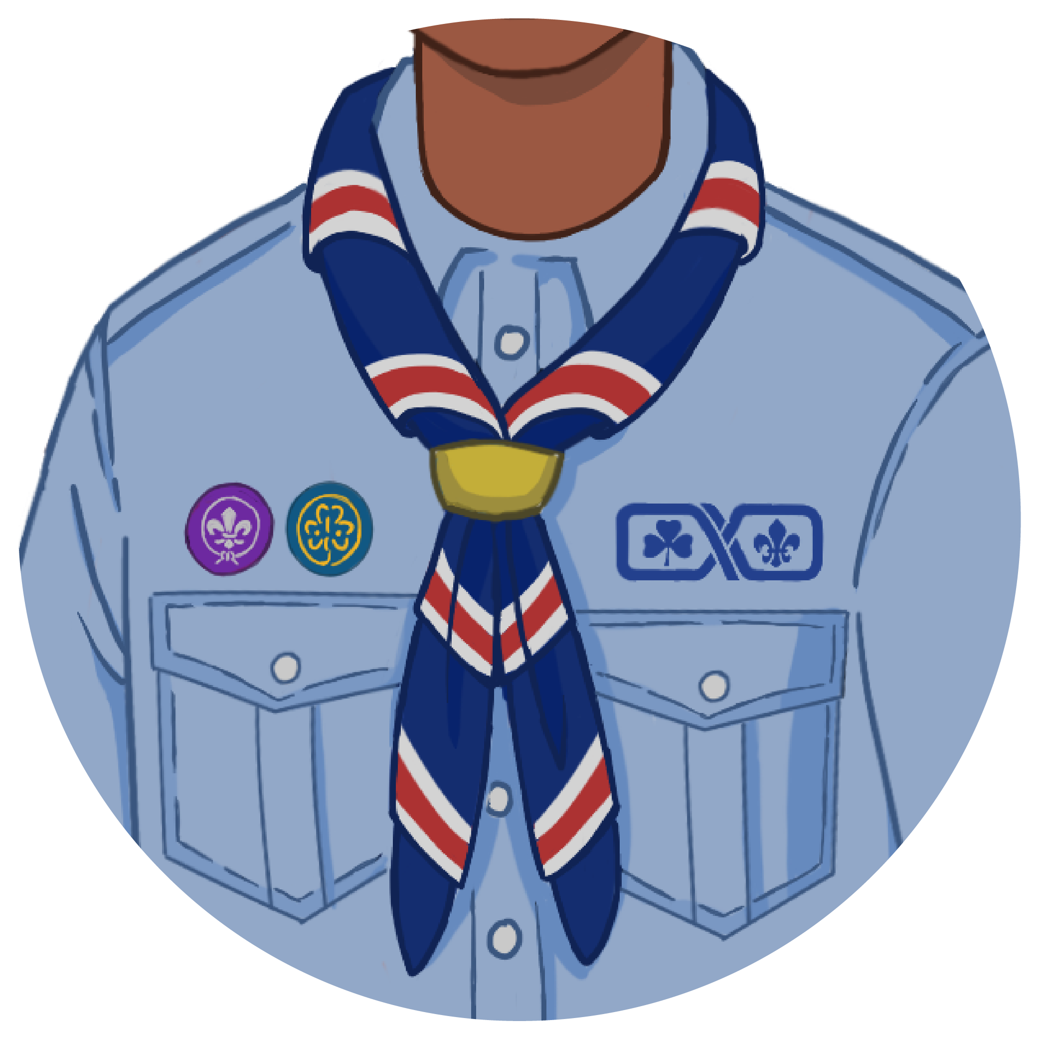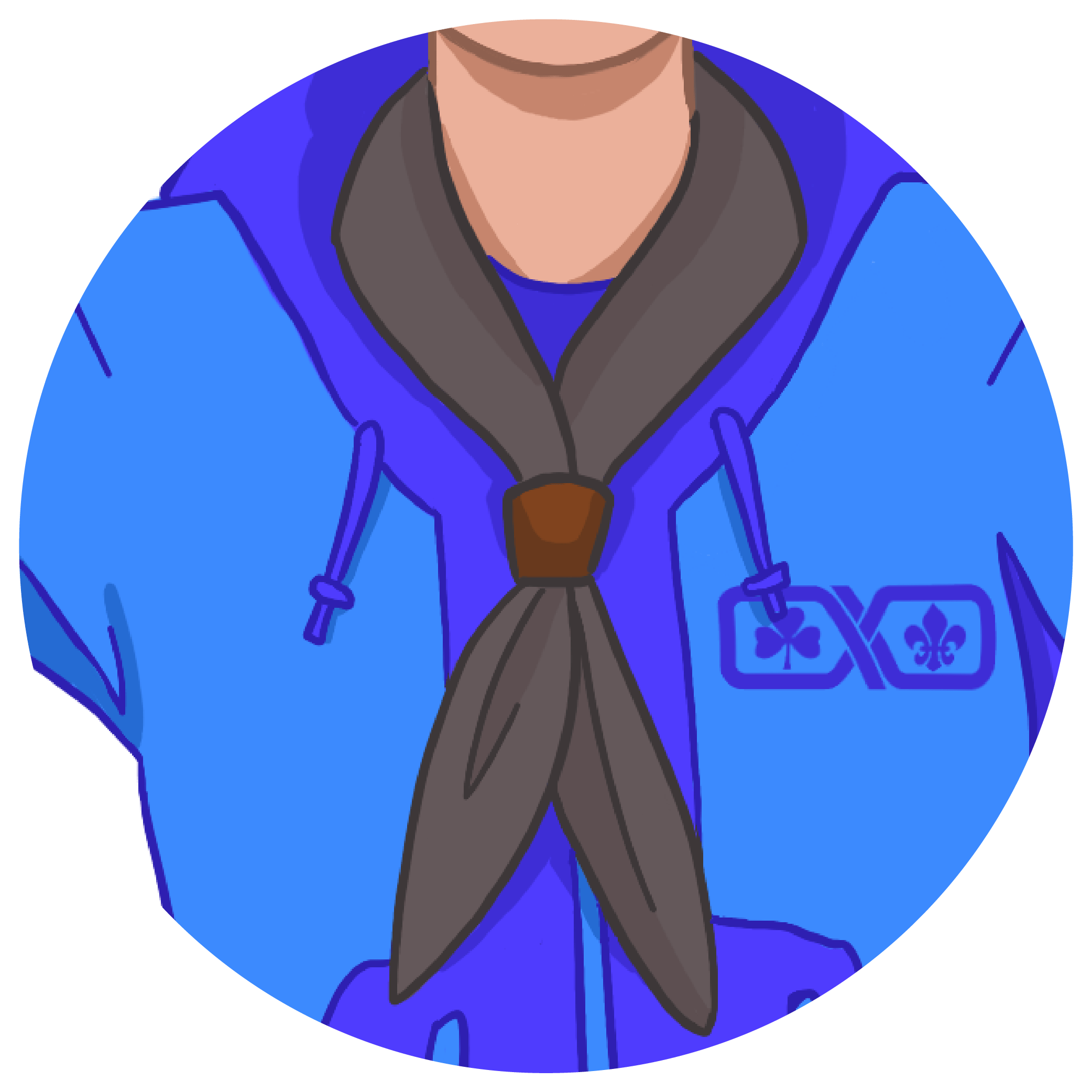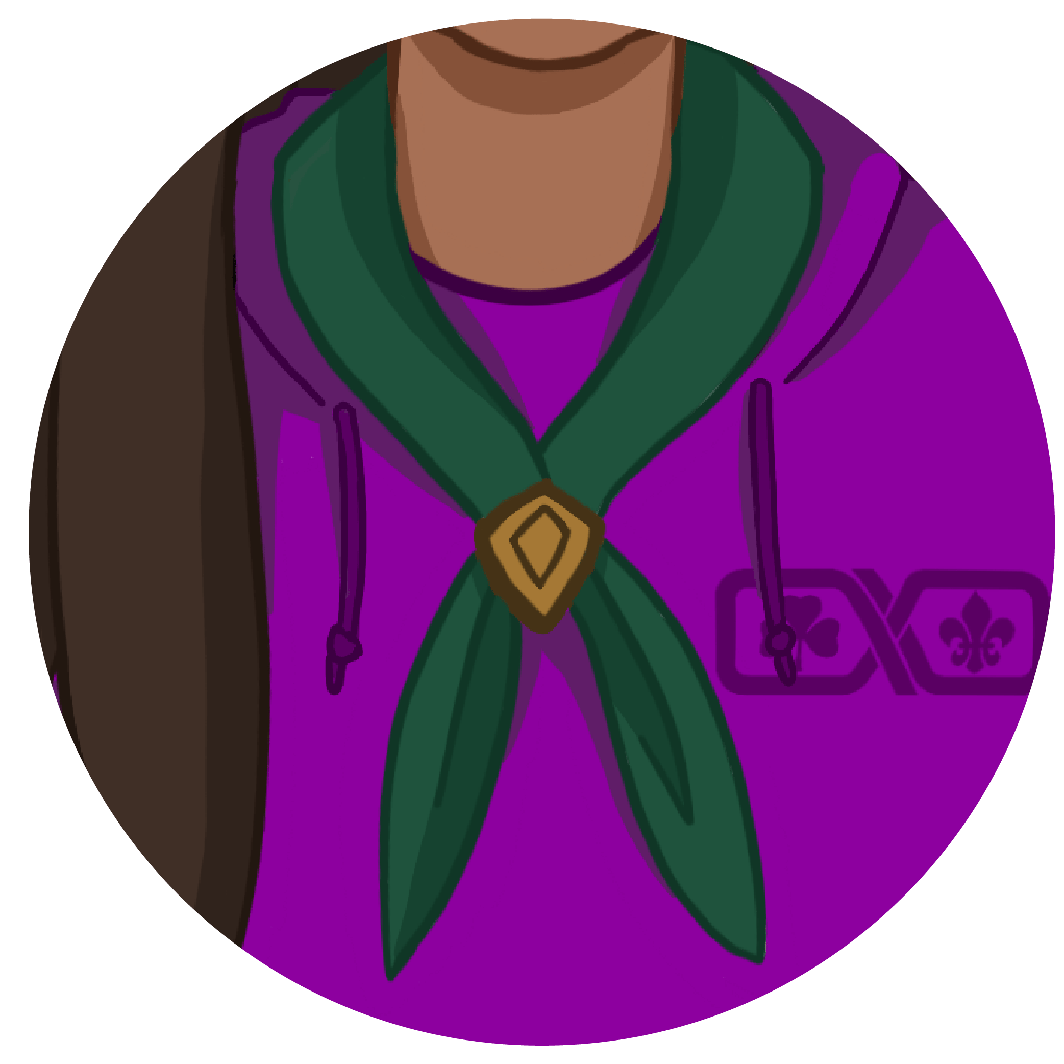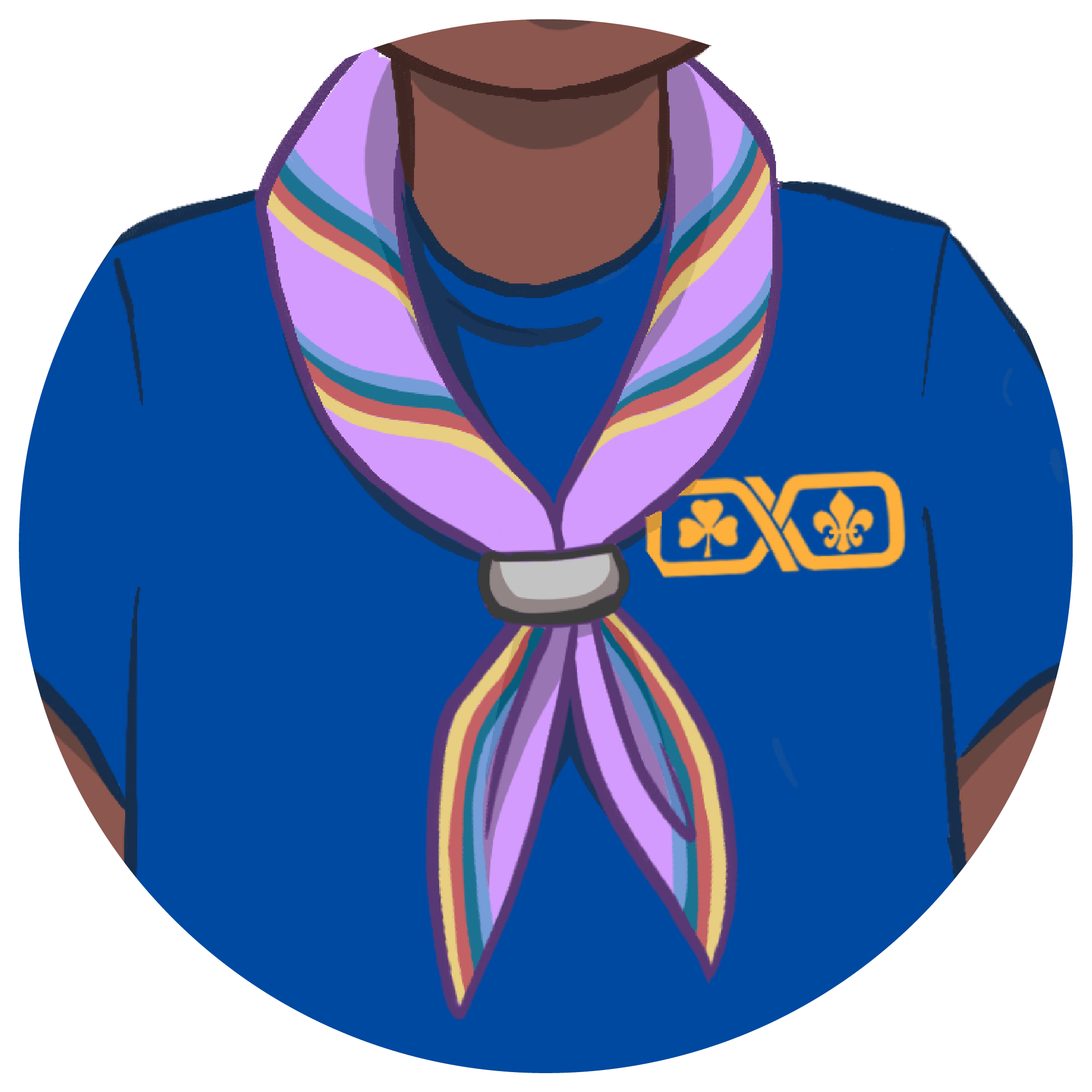 Skátar sem eru komin yfir þátttökualdur (26 ára og eldri) bera fjólubláan skátaklút