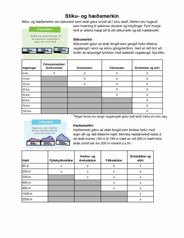 stiku- og hæðamerki