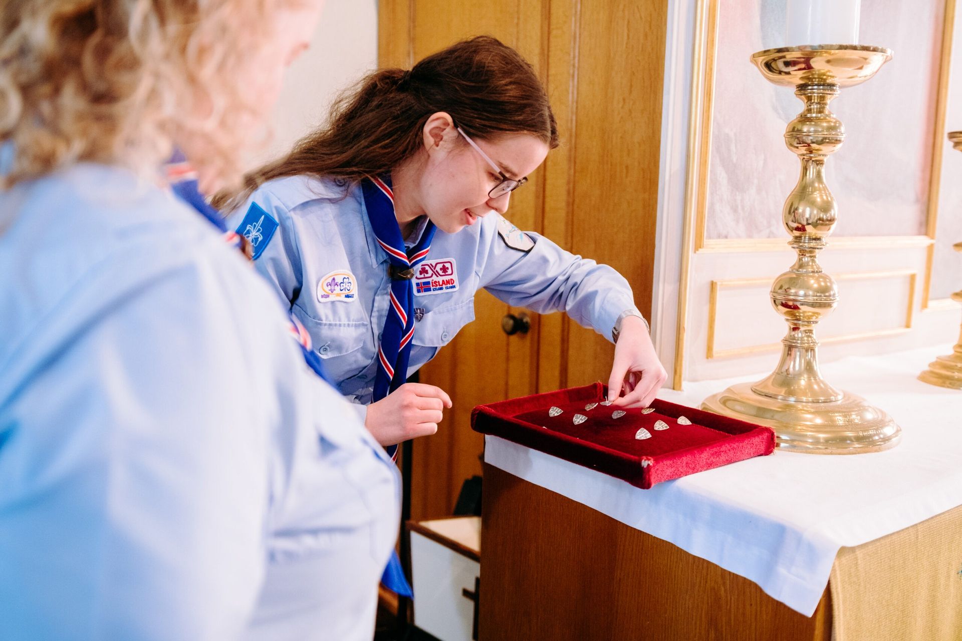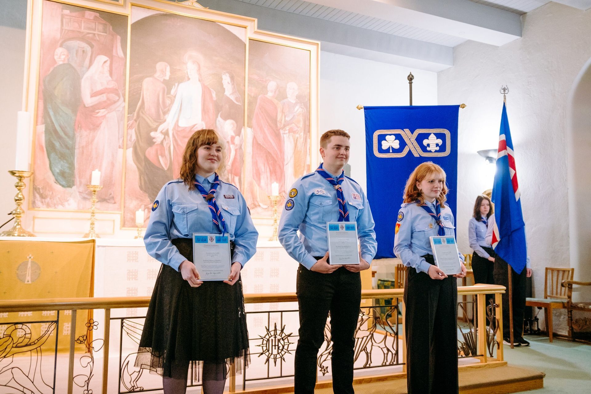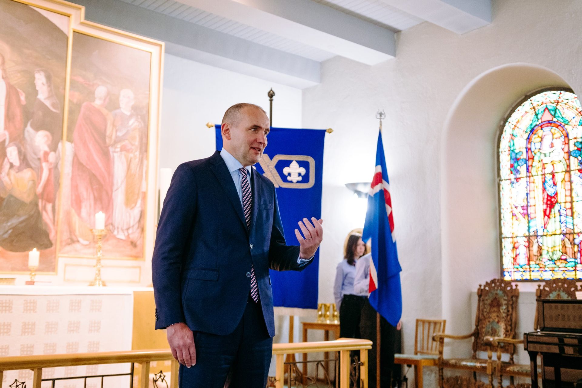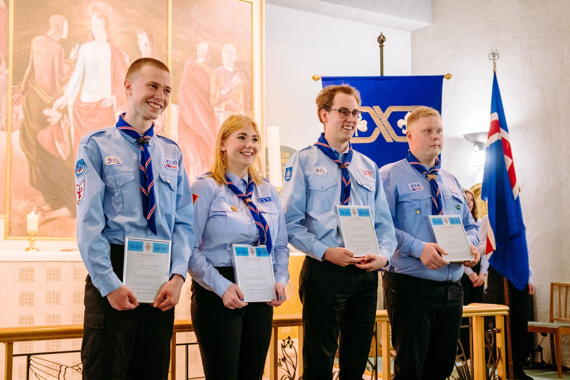 Að lokinni afhendingu var haldið til Bessastaðastofu þar sem skátahöfðingi sagði nokkur orð áður en boðið var upp á veitingar.