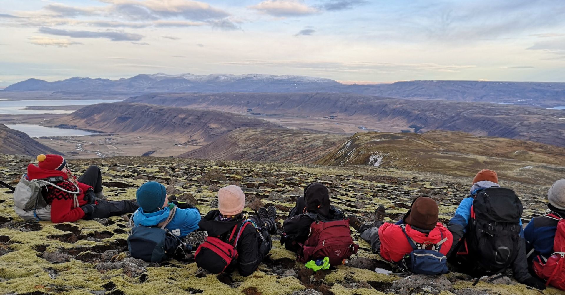 Þátttakendurnir byrjuðu gönguna á því að skoða bestu gönguleiðina á kortum og skipuleggja sig. Svo lagði hópurinn af stað við sólarupprás. Létt var yfir hópnum og öll í góðu skapi, skátarnir styttu sér stundir við gönguna með léttum orðaleikjum og spjalli á meðan þau nutu útsýnisins. Víðtækt landslag var í göngunni eins og tún, grjótaslóðar og sandsteinar en svo var einnig smávægis snjór og klaki á toppi Móskarðshnúka og Trönu. Þegar hópurinn var kominn að Móskarðshnúkum var sólin byrjuð að lækka á lofti og gengu þau niður hlíðina við sólsetrið.