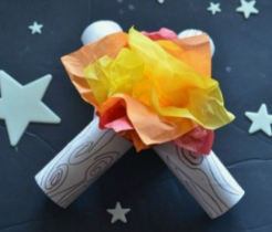 Það er alltaf gaman að sitja í kringum varðeld, segja sögur og syngja nokkur lög! Þú getur búið til inni-varðeld fyrir innileguna þína. Það sem þig vantar er klósettrúllur, pappír, skæri, liti og lím.