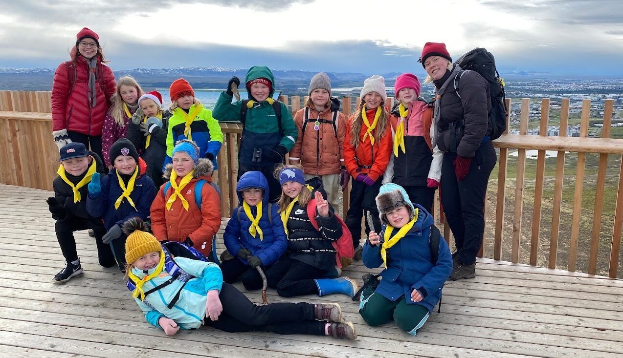 „Það var margt sem bar fyrir augu á leiðinni og drekaskátarnir tóku sér góðan tíma í að rannsaka drullupollana, sprekin, krækiberin, já og útsýnið. Það má segja að drekaskátar séu algjörlega með núvitundina á hreinu og það var ótrúlega dásamlegt að fylgjast með þeim njóta náttúrunnar og félagsskaps hvers annars.“