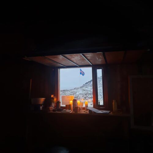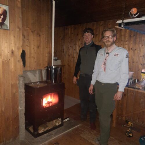 Sl. sunnudag, 7. des. var þeim áfanga fagnað, að ný kamína er komin í gagnið og skálinn formlega orðinn útilegutækur. Boðið var upp á gönguferð með leiðsögn frá Hömrum upp að Gamla, þar sem boðið var upp á kakó, kex og mandarínur (í tilefni aðventunnar) og voru þar samankomnir á þriðja tug manns þegar mest var. Áttu viðstaddir þar notalega og ánægjulega stund, auk þess sem veður var með besta móti til gönguferða. Jóhann Malmquist félagsforingi hélt erindi en einnig sagði Ólafur Kjartansson frá Brunná lítillega frá framkvæmdunum við byggingu skálans á árunum 1979-81. Ólafur, jafnan kallaður Óli Kjartans, hafði einmitt veg og vanda af því að koma nýju kamínunni fyrir og málmsmíðum í kringum hana. Sagði Óli frá því, að á sínum tíma hefði allt efnið í skálann verið borið frá Kjarnaskógi eða Fálkafelli og kamínan líklega þyngst af því öllu. Nýja kamínan og annað efni til framkvæmda var hins vegar ferjað uppeftir með þyrlu nú haustdögum. Rétt er að óska hlutaðeigandi til hamingju með nýja kamínu og aðrar endurbætur á Gamla.