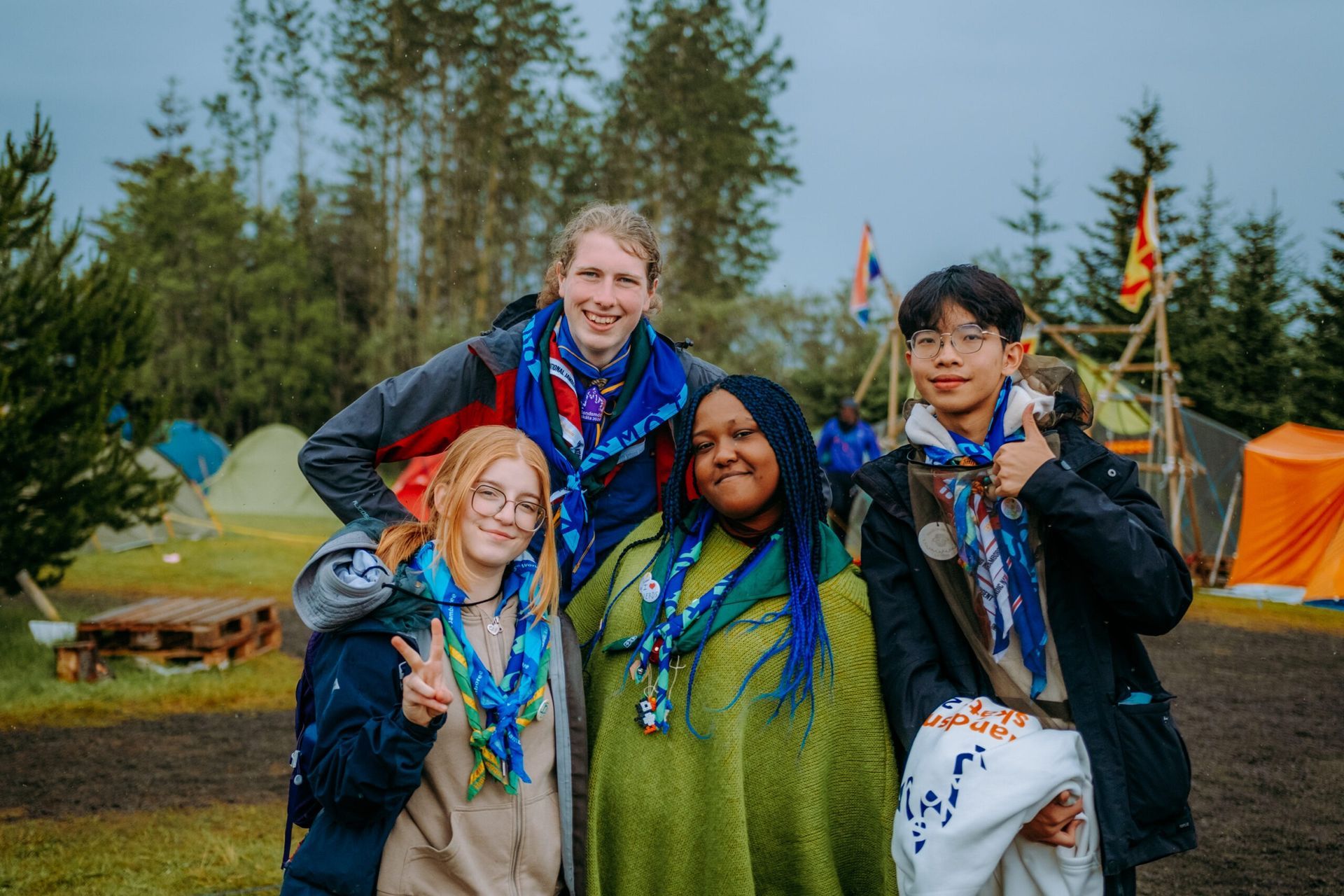 Í dag rigndi á okkur en öll hafa verið á fullu í dagskrá með bros á vör. Þreytan er farin að gera vart við sig en spenningurinn fyrir heimsóknardegi og hátíðarkvöldvöku morgundagsins leynir sér ekki. Trönubyggingar rísa, fánastangir hækka og verður hæsta fánastöngin tilkynnt í Pappírsheimum, landsmótsblaði morgundagsins.