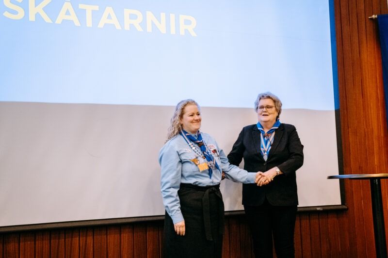 Harpa Ósk Valgeirsdóttir hefur tekið við sem skátahöfðingi og var henni vel fagnað á fjölsóttu Skátaþingi sem haldið er á Bifröst nú um helgina.