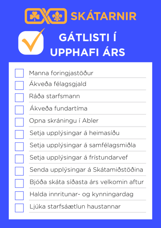 Áður en starfsárið hefst er gott að setjast niður og skipuleggja komandi starfsár. Mikilvægt er að vera tímanlega í að ákveða mikilvægar dagsetningar eins og fundartíma, dagsferðir, sveitarútilegur, félagsútilegu, skátamót, hverfishátíðir, jólakvöldvökur og einnig skoða hvenær mikilvæg frí eru í skólum hverfisins. Gott er að renna yfir viðburðadagatal BÍS til þess að skoða hvenær fræðslur og námskeið eru ásamt áhugaverðum viðburðum sem þarf að taka mið af.
