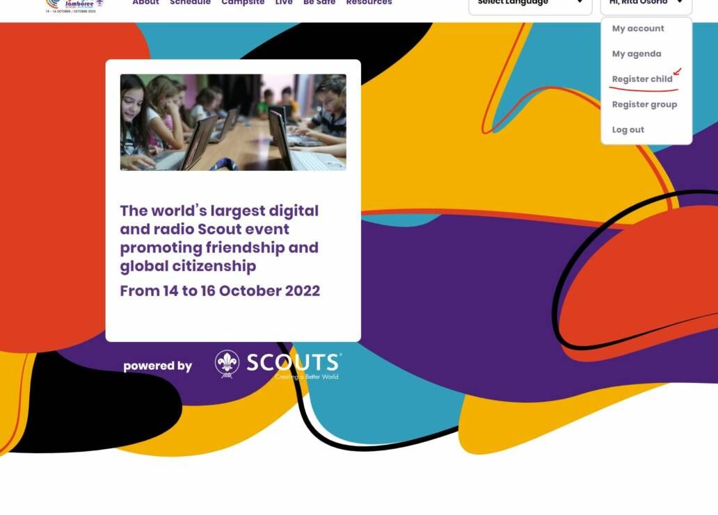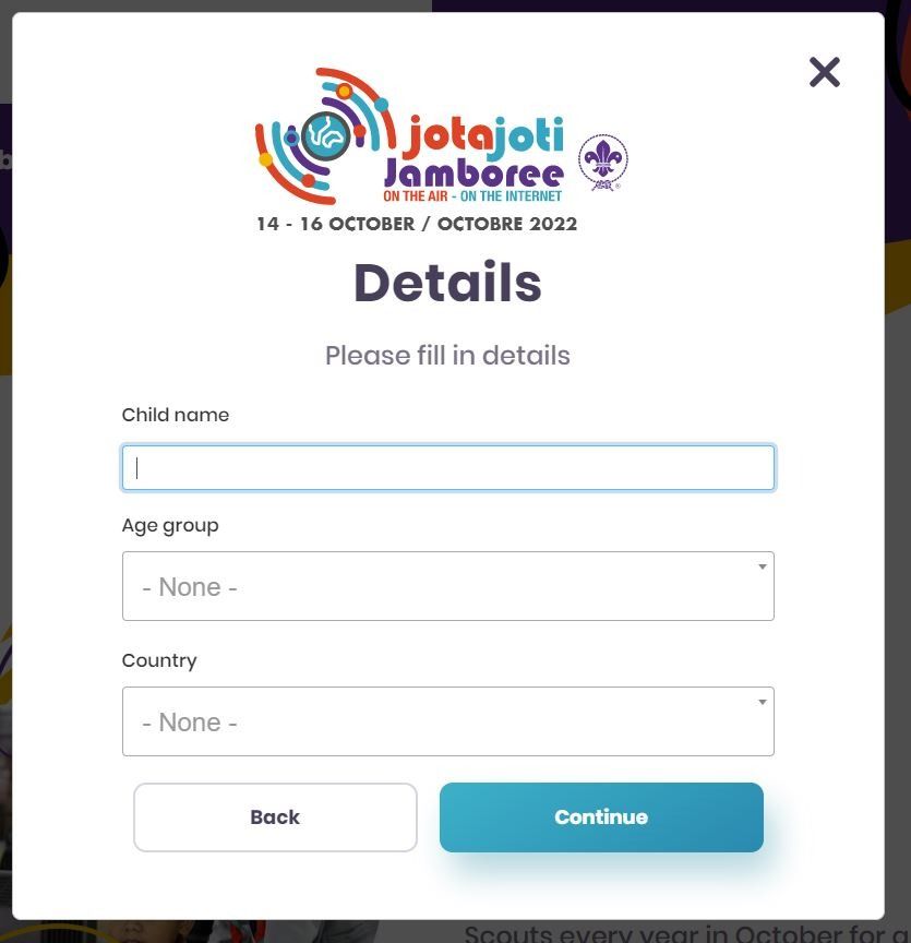 Þú getur skráð þig, skáta yngri en 12 ára og/eða hópinn þinn strax í dag. Þetta er gert með að heimsækja heimasíðu mótsins jotajoti.info. Þar blasir við blár hnappur með titlinum „Register now“ sem þú smellir á.