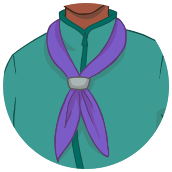 Skátar sem eru komin yfir þátttökualdur (26 ára og eldri) bera fjólubláan skátaklút