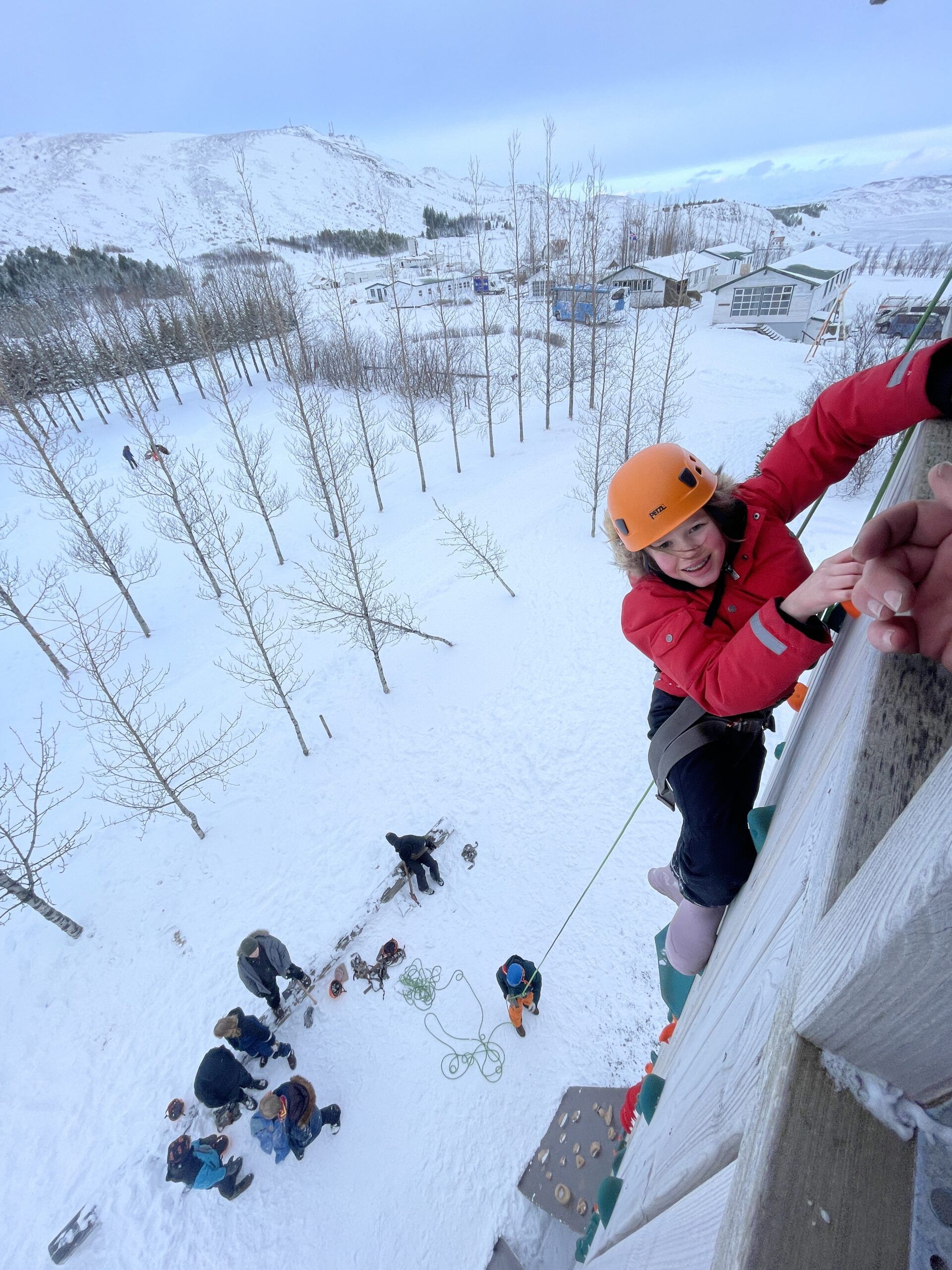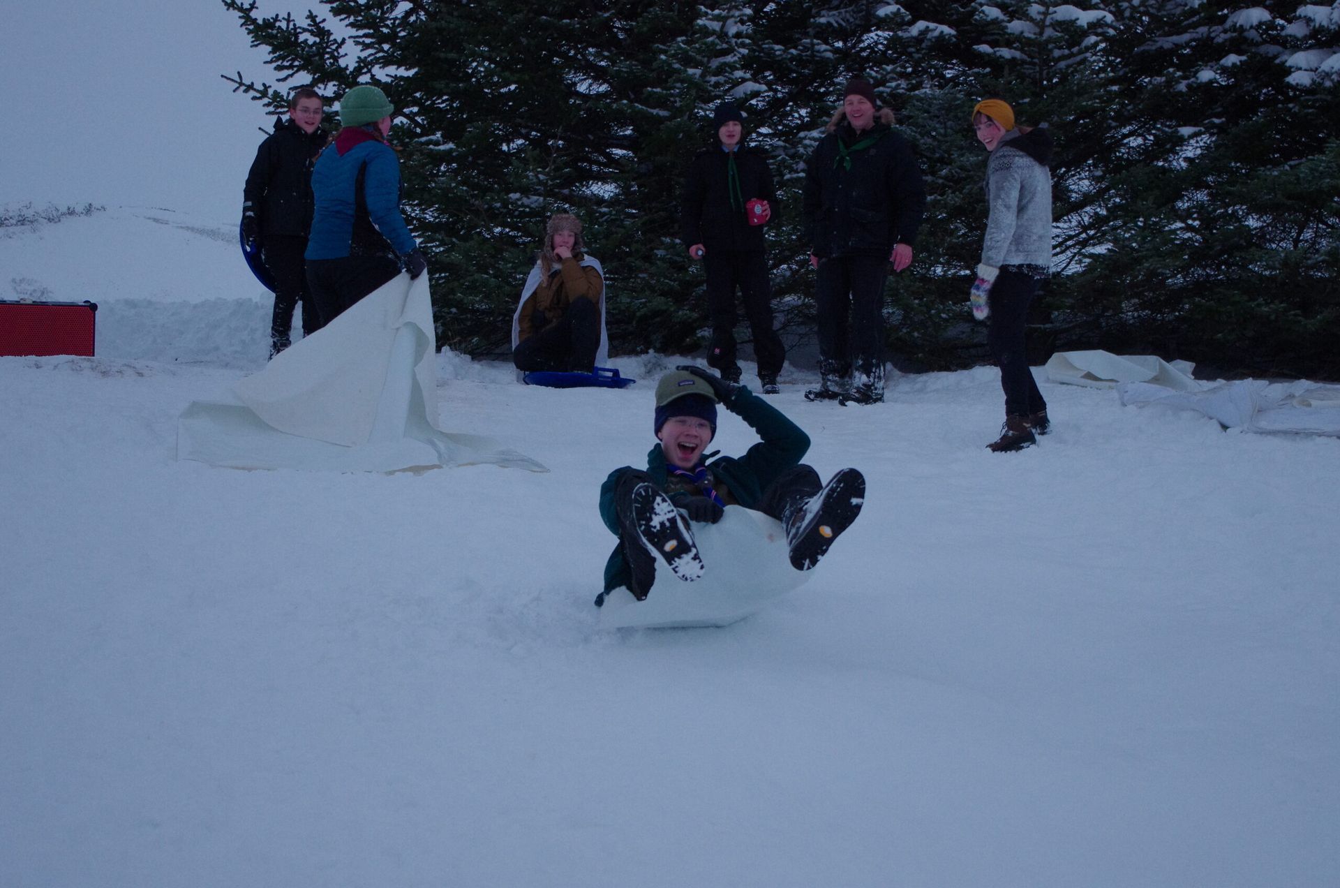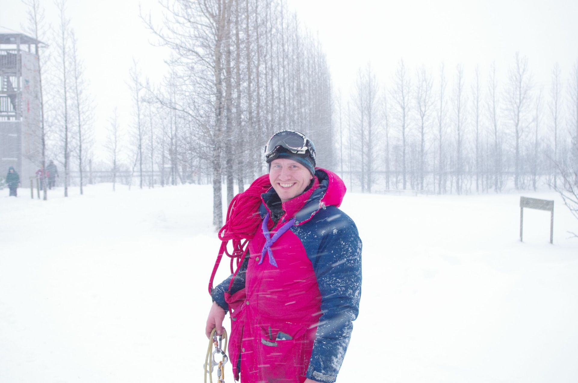 Skátar á skátamóti í vetrarhríð