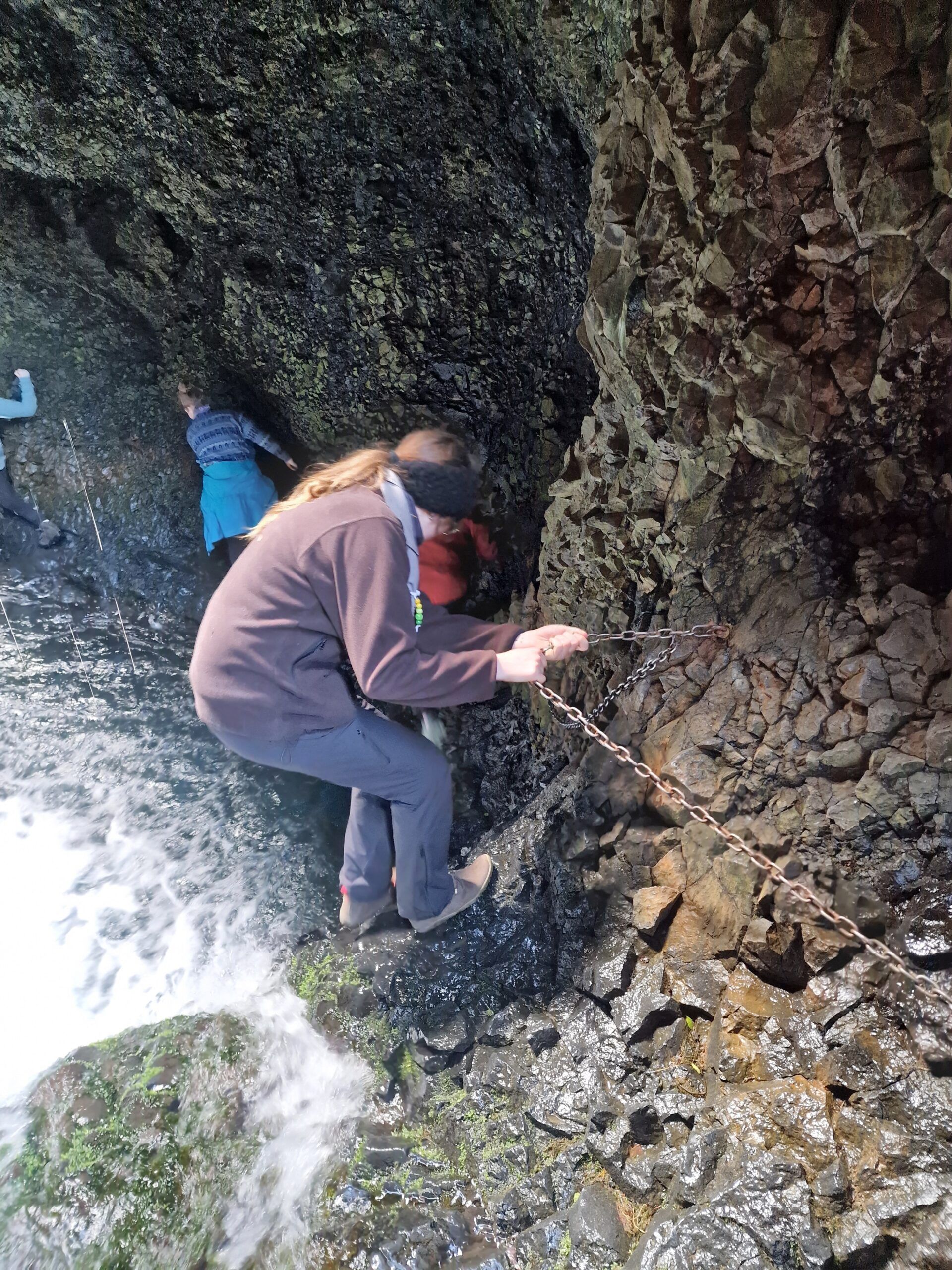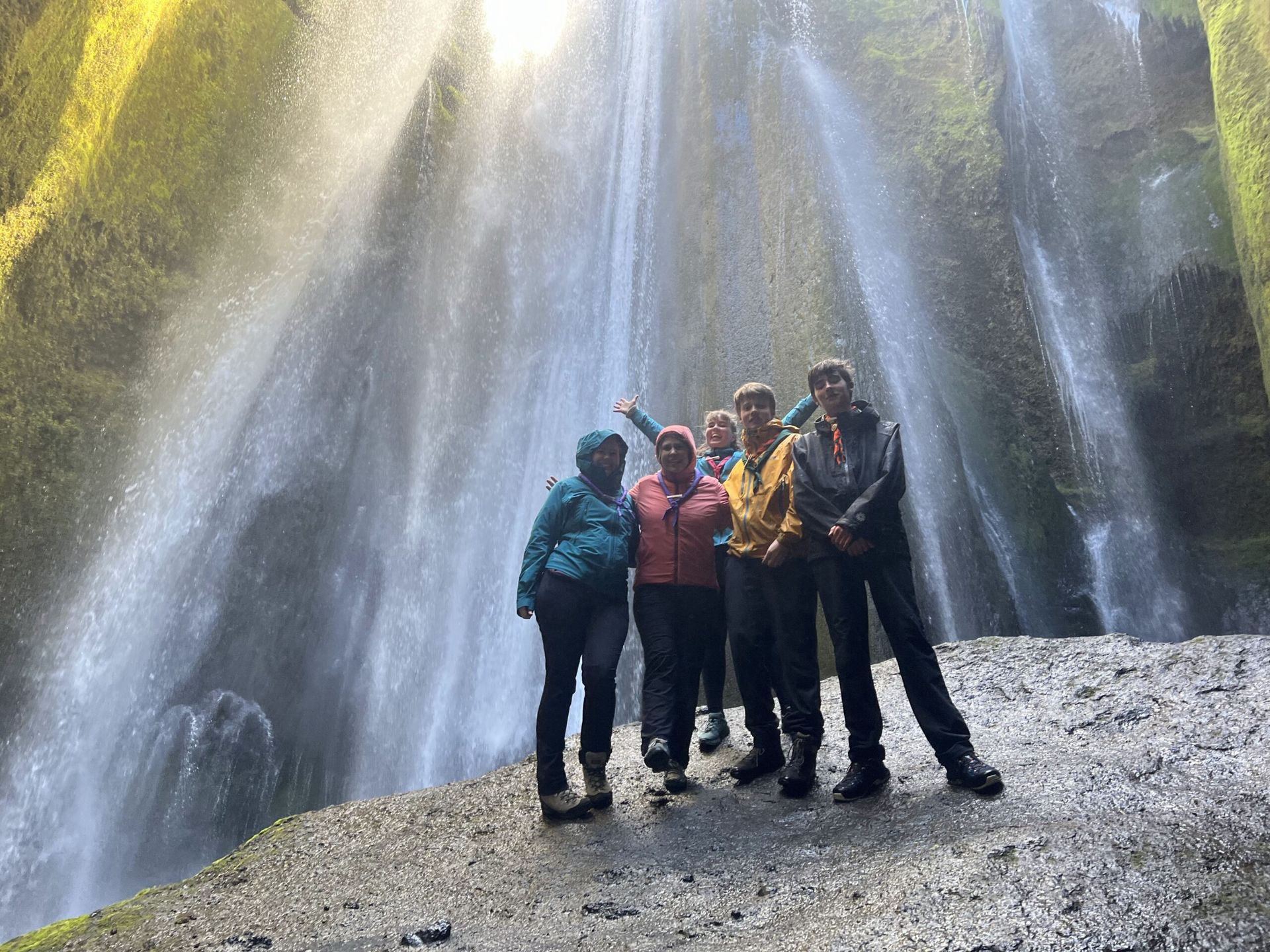 Eftir langt og gott stopp keyrðum við áfram að Seljalandsfossi og hann var skoðaður gaumgæfilega. Sumir komu smá blautir úr þeirri upplifun en það var bara SPS (stuð, pepp og stemning#takkEinar ). Næst á dagskrá var að skoða Gljúfrabúa sem er foss inn í gili. Það var tekið mikið af myndum af fossinum, enda var hann mjög töfrandi. Svo skelltum við okkur í Nauthúsagil og gengum þar meðfram klettaveggjunum að litlum fossi og var þetta fyrsta áskorunin fyrir suma, þar sem að þurfti að klifra á keðju til að komast að fossinum. Merkurker var næst í röðinni, á bílastæðinu skelltu sér allir í sundföt og síðan var stokkið út í á sem liggur í gegnum helli.