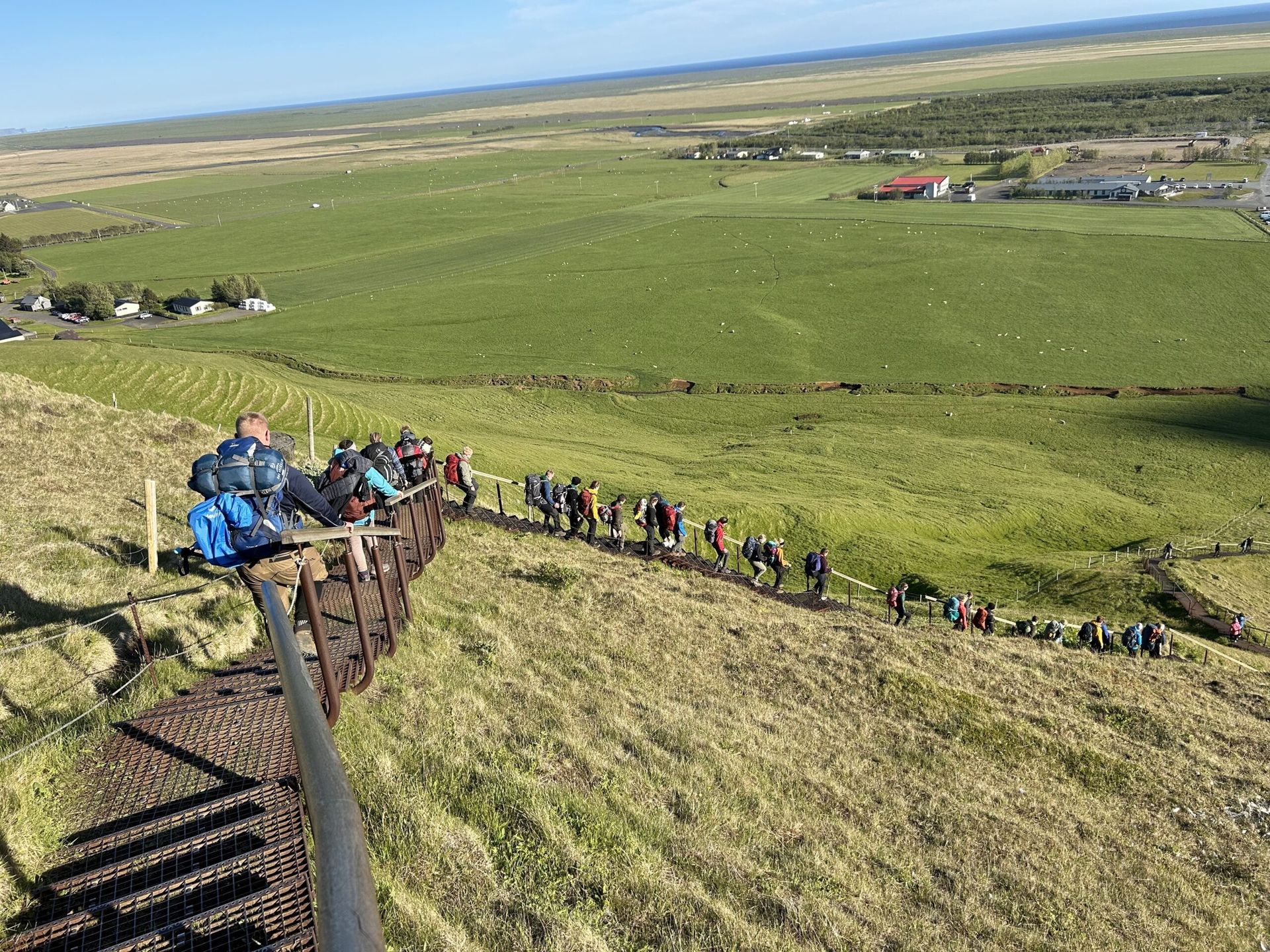 Skátarnir vöknuðu í svitakófi eftir með misgóðan svefn og gerðu sig tilbúin til að hittast aftur á leiðinni niður að Skógum. Sá endurfundur vakti gleði og þrömmuðu þau áfram með SPS í hjarta, tilbúinn fyrir ferðina að handan. Smá snjór var eftir þannig við nýttum öll tækifæri til að renna okkur niður snjóbrekkurnar. Á leiðinni niður var glæsilegt útsýni og fossarnir nærri því óteljandi, þó að einhverjir reyndir foringjar hafi náð góðri tölu. Skógar voru sýn sem öllum þreyttum skátum hafði dreymt um og hamingju magnið var yfirfullt.
