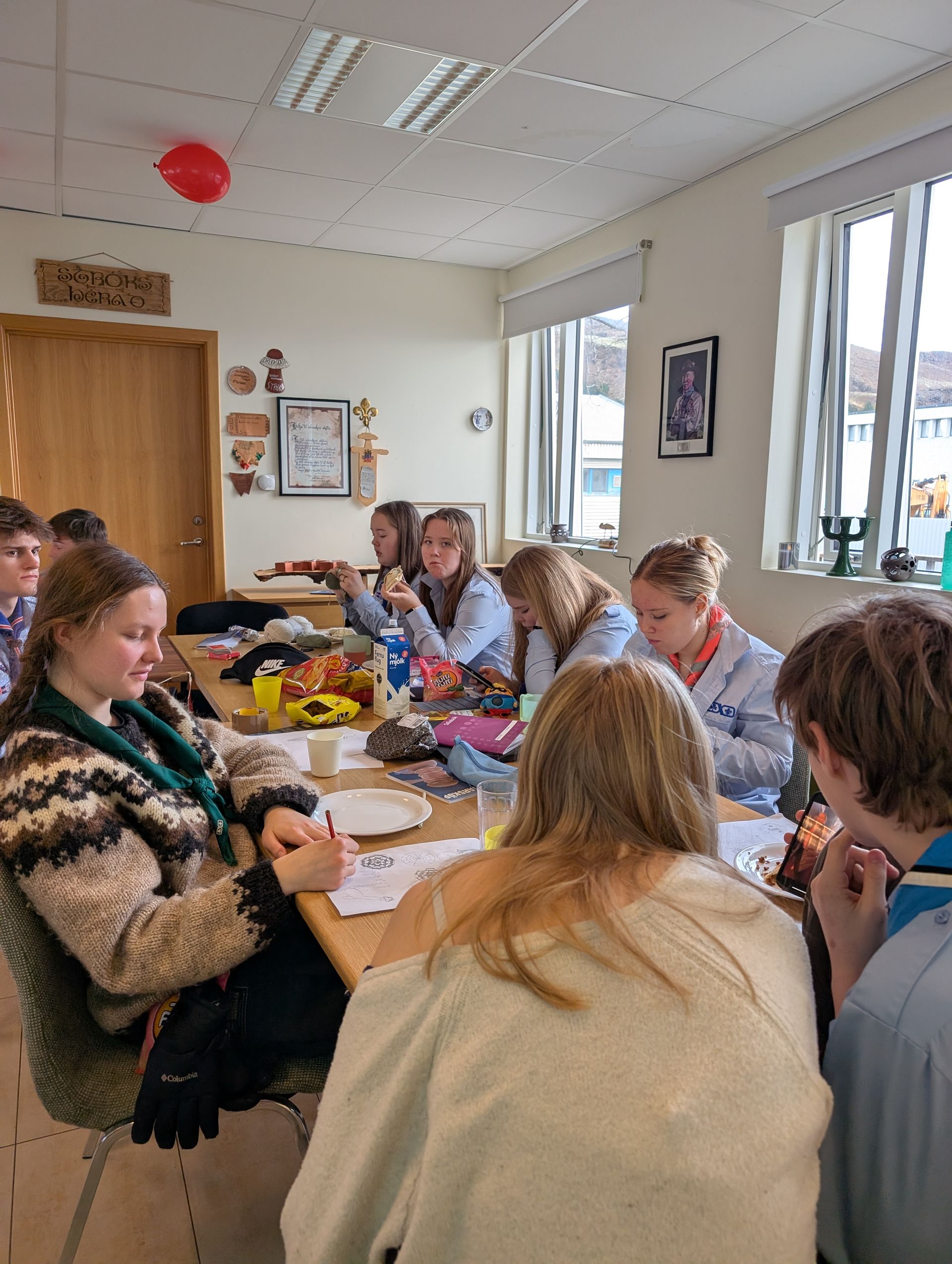 Í kvöldmat voru ljúffengir hamborgarar og að honum loknum var haldið upp á Ungmennaþingið með köku og grænmetisspjótum. Skátunum var frjálst að fara út, en margir ákváðu að vera inni og spila Just Dance.