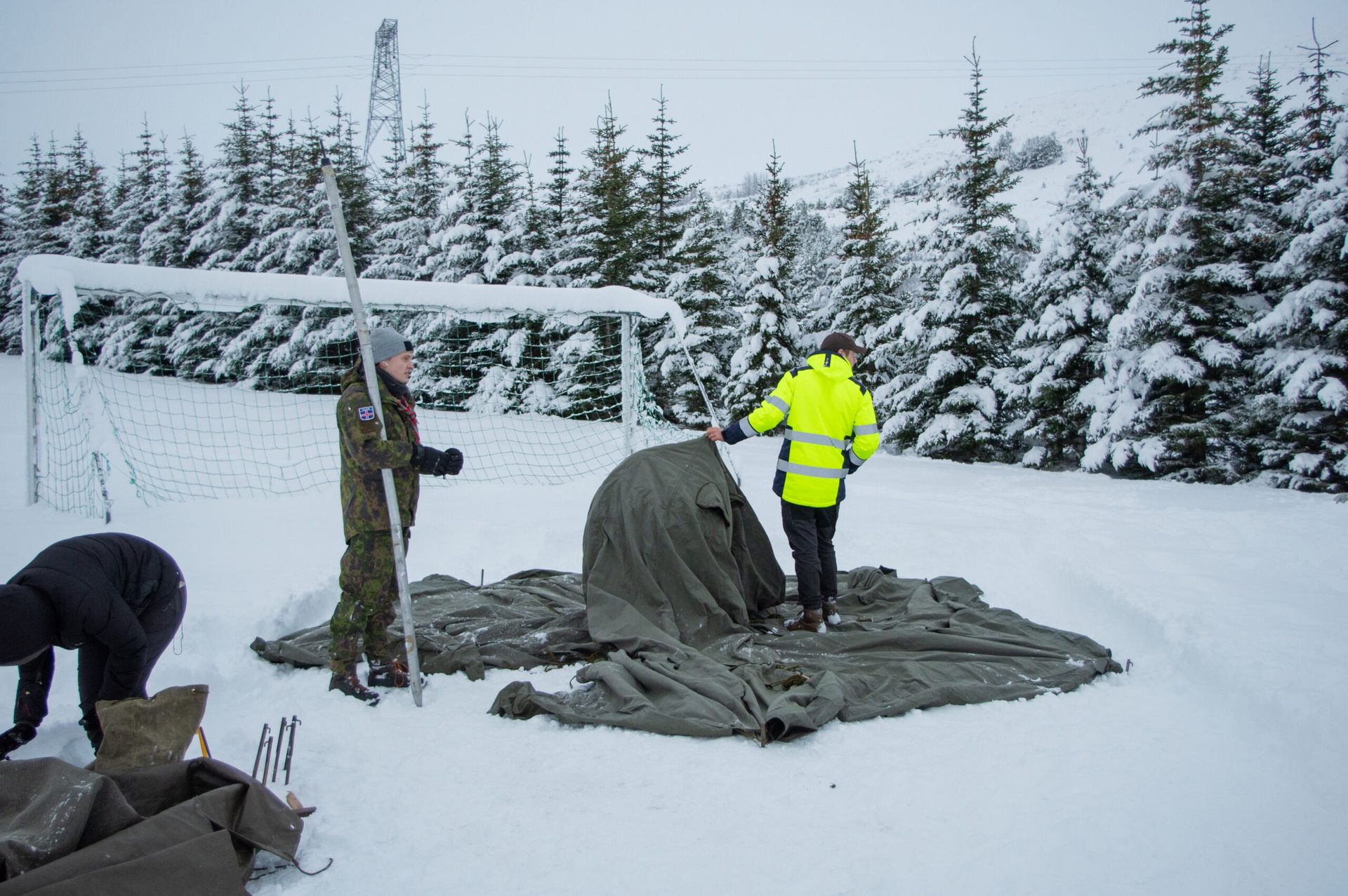 Að því loknu fóru eldri skátarnir að reisa tjaldbúðir til að gista í og á meðan fóru yngri skátarnir í dýrindis skátakakó og kex.